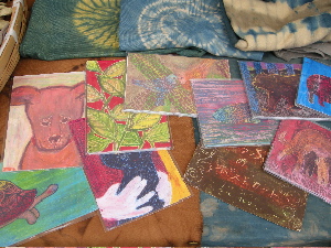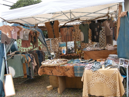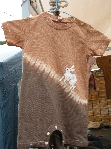 2009/09/25 Category : 未選択 葉音色〜はおにろ〜 前回の「ましこWALK GALLERY」出店レポートに引き続き,今回はお隣で出店していて仲良しになった草木染めユニット【葉音色〜はおにろ〜】のご紹介です。制作者のひろあきくん&なほちゃんは埼玉県・飯能市にある自宅を拠点に活動しています。色彩豊かな草木染めは,焚き火から煮出すというこだわりの手法。下地となる素材の触り心地も良く,とてもいい仕事をしているのは一目瞭然です。 大人用はもちろん,0歳から草木染めを楽しめる嬉しいラインナップ♪気になるお値段は…くつ下 1500円手ぬぐい 2000円ストール 2500円キッズTシャツ 4000円ベビーロンパース 4500円Tシャツ 8000円と,比較的お手頃なのでプレゼントにも最適ですね。こちらは,なほちゃんが描いたイラストのポストカード。ひろあきくんは,「てのひらまつり」や「BE-IN」などのおまつりで大がかりな流木アートを施す空間演出も手がけているという,草木染めのみならず,多才なお二人なんです!そんな二人に負けず劣らず活動しているのが,看板犬の「さんぽ」座っているだけで人を引き寄せる魅力には,私もあやかりたいなぁ…。そんなわけで今回ご紹介した【葉音色〜はおにろ〜】の今後の出店スケジュールは10/4 菜音ーzionー@埼玉県・アグリパークゆめすぎとhttp://www.zion831.com/10/10,11 多摩クラフト10/24,25 アースガーデン秋@代々木公園恒例のアースガーデンではTOUNKYも出店が決定しているので,私達のブースはもちろん,はおにろブースもぜひ覗いてみてくださいね!