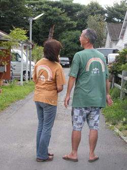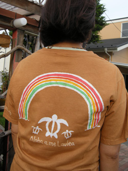 2010/07/23 Category : 未選択 Special thanks to Good News !!! 遂に念願だったオリジナルTシャツが私達のもとへ…!制作していただいたのは5月のフェアでお世話になったGood Newsさん♪世界に2着だけの最高の贅沢★Tシャツのボディーは着心地の良い【GOHEMP】!!後ろにはさりげなく「こだまカフェ」の文字、そして袖にはTOUNKYのロゴと完璧な仕上がりに大満足です!これから出店ではモチロン、お店でも沢山着ちゃいます♪Good Newsさん、家宝級のTシャツありがとうございました!そしてコチラは仲良し、ヒデさん&ちゃーちゃん夫妻がフェアー中にオーダーしたもの。サーファーのヒデさんらしいハワイの神様と虹をモチーフにしたデザイン★お二人とは世代は違えどスピリッツを共有出来る、飲み仲間兼、ファミリー兼、ご近所さんなので、こうしてお互いオーダーしたTシャツを見せ合うのも楽しみの一つ♪「こんなのあったらいいなぁ…。」を形にしたい方は、思い切ってオーダーメイドをしてみては?お問い合わせ:Good News http://www.goodnewsfamily.net/