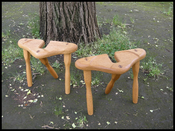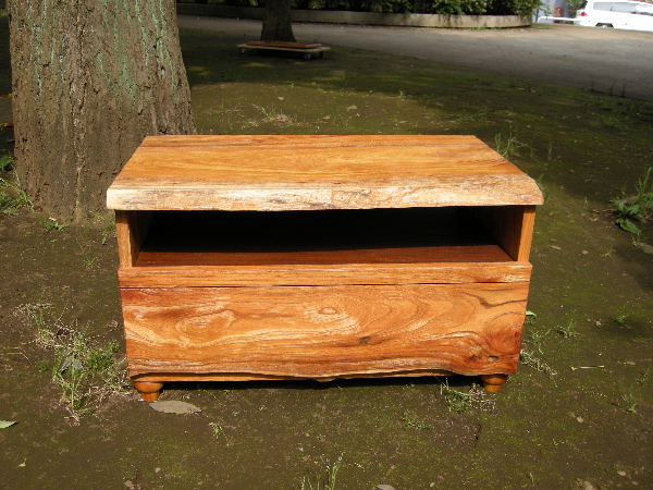 2008/08/09 Category : 作品紹介 木工家の創る家具 TVボード 価格:52000円作品展で家具を置いておくと,「あたたかい感じがしますね。」という嬉しいお声をよく聞きます。「意外とお手頃な値段ですね。」と,お客様。「けっこう値段するんだね。」と,友人達。(笑)私は木工家のマネージャーとして,一消費者として,どちらの意見にも頷きます。消費者としてなら,通販カタログの家具の値段を相場として考えてしまいます。しかしそれは,「オーダーメイド家具」という言葉が敷居が高く,自分とは全く無縁だった時の考えです。果汁30%,果汁70%,果汁100%。どれも商品名は『オレンジジュース』天然木30%,天然木70%,天然木100%どれも商品名は『木製家具』たとえ天然木30%でも家具は家具です。しかし,TOUNKY WOOD WORKSの家具を見て「あたたかい」と感じた方,それこそが天然木100%の木の温もりです。そこにはデザイン・技術を超えた木のパワーがあるからです。そこで木工家Takeは考えます。「TVボードだから後ろは配線の為にくりぬいて,DVDとかの機材の裏が配線しにくいから,真ん中の板は引き出せるように加工しよう。1人暮らしならパソコン台でもいけるな。キーボードも引き出せるし。でもその場合は引き出しをなくして,プリンターが収納出来るように加工しないと。」そんな思考錯誤の中,私が1番驚いた事。「木工家は裏側にも手を抜いちゃいけない。使う人が後ろを見た時に,『後ろもかわいい』と思える作品にしたい。」と… TVボード裏側Takeは作品を創る時,木と会話をするように制作します。選んだ木材の中の年輪や木目を見ながら,どの場所に配置するのがふさわしいのか,自問自答を繰り返し,1つの作品が生まれてきます。スツール 価格:1脚27000円座面部分を削っては座り,削っては座りを繰り返したスツール。少し座面を前に傾ける事で背筋が伸びた姿勢になるよう考案されたものです。TOUNKY WOOD WORKSでは家具のオーダーメイドも承っています。天然木100%に加え,使う人の事を最大限に考えた木工家の創る家具。お見積もり無料となっていますので是非お問い合わせ下さい。