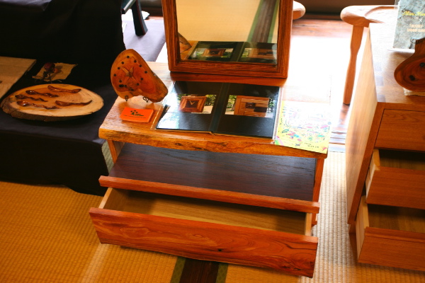 2008/06/24 Category : 作品展レポート 〜Wood Work's Free〜@ギャラリー自由が丘 【TOUNKY WOOD WORKS】〜Wood Work's Free〜の2日間の展示が終了しました。悪天候の中ご来場頂いたみなさま,ありがとうございました。今回のTOUNKY WOOD WORKSの作品テーマは「LOVE AFRICA」ということで,アフリカン・テイストの空間を提案しました。ミラーや時計には実際にアフリカの木材である,ゼブラウッドやブビンガを使用し,お客様にも木材の名前を覚えて頂いたりと,「表現する事の意味」を肌で感じる事が出来ました。以前こちらでご紹介した,ManiManiMoon ユキちゃんとのコラボレーション作品を展示したところ,「木の可能性」というものを発信出来た事にとても満足しています。そして作者Takeの「木のぬくもりを日常に」というメッセージが形となった作品展でした。〜Wood Work's Free〜に参加している他の作家さんのご紹介です。 【visitus】「人を招きたくなる部屋に」をテーマにスタイリッシュで繊細な作品を提案。【kamina&c】「アンティーク・ミックス」がコンセプトの独創的でアートな作品を提案。三者三様の作風が魅力の〜Wood Work's Free〜は次回の日程は未定ですが,開催は続けていきますのでお楽しみに!!*作品に対するご意見・ご感想がありましたらコメント欄にご記入お願いします。