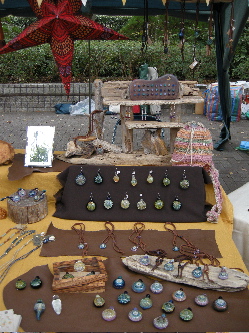 2009/10/31 Category : 出店レポート アースガーデン秋・2009 アースガーデン秋の2日間の出店が終了しました。お立ち寄り頂いた皆さま,お買い上げ頂いた皆さま,ありがとうございました。今回初日は午後から雨,2日目は午前中が雨…と,悪天候の中での出店でしたが,さすがはアースガーデン!雨にも負けず風にも負けず,終始楽しい雰囲気に♪そんな中,ご通行中の皆さまに「かわいい〜!」と大人気だったのがこちらの新作の振り子時計。画像では見にくいかも…ですが,穴からひょっこりと見えるピースマークとManiMani Moonの特注ガラス。全て一点ものなんです♪この時計をキラキラした眼で見ているお客様の顔を見るのが私達夫婦の楽しみでもありました。そんな風にのんびりと出店を楽しんでいたTOUNKY夫婦に突然の嬉しいお誘いが!なんと,アースガーデン内ではお馴染みの「ラジオ・フリーダム」に作家紹介で出演しませんか?との事。まさかのTOUNKY,ラジオ初出演!テーマは「草・木・土」という事で,他に草木染め作家さん,陶芸家さん,そして私達で作品のPRや活動をお話させていただきました。緊張したけどとてもいい経験で楽しかったです♪さてさて,肝心の出店ブースのほうはというと…通りすがりのお客様はもちろん,リピーターのお客様との嬉しい再会!テントの中は常に入れ替わりで友人が現れたりと賑やかなムードに♪そんなわけで今回もTOUNKYスナップをご紹介させていただきます!黄色いキノコのピアスをお買い上げ頂いたもんちさん&サダさん。とっても雰囲気のあるお二人★もんちさんは翌日も「昨日ピアス買いました。」と訪ねてきてくれました。こういうお心遣いがとっても嬉しかったです。お次はTOUNKY夫婦お気に入りの川崎のBar,【AJITO】で飲み友達になったやっちゃん。「ハイジに出てくるような木のお皿とスプーン作って下さい。」という彼。約束通りアースガーデンに遊びに来てくれました。スプーンを1つ1つ手にとって真剣に選んでくれたヒラカタさん。「写真撮らせて下さい!」とお願いした私に,はにかんだ笑顔で「私でいいんですか?」と言っていた彼女。ふんわりとした内面に思わず私がキュンとしちゃいました♪小悪魔的美女系の友人プゥ。「ネットで見て欲しかったの♪ウフフ」とピースゴムを即決!なんとなく『小悪魔』って付けてしまうのがみなさんわかるでしょ?でも中身はフワフワした優しい女の子です。このギャップがまたなんとも…。おかえりなさ〜い!の中西選手(アースガーデン夏のリピーター)&アベさん。類は友を呼ぶんですね…。オシャレガールを連れて再びTOUNKYブースに遊びに来てくれました。次回の出店の時にもブースに遊びに来てくれたら嬉しいです♪こちらは【taon】というネームで活動している出店者のヒロミさん。「結婚式に付けようと思って〜」と,ハートのピースをお買い上げ。花嫁さんに付けて頂けるなんてとっても嬉しいです!おめでとうございます☆☆余談ですがあの後私がそちらに遊びに行ったらお留守でした。残念…。でも可愛い作品は拝見しました♪また今度ゆっくり★そしてアースガーデンの常連さんで友人のemiちゃん。いつもニコニコした顔が「ひまわりに似てるなぁ。」と勝手に思っています。楽しい事に向かって成長するとemiちゃんのようなスマイリー顔になれるんですね。やっぱりこの人ひまわりみたい。まさかのご来店!友人のayammy。なぜまさかのご来店かというと…彼女は熊本在住なんです!「出店するって見たよ〜。前日に飛行機のチケット買って来ちゃった♪」と,嬉しいサプライズ!!ハートのピースネックレスを色違いで2点お買い上げ。素材や質感にこだわるセンスにはいつも脱帽!そんな彼女は最近熊本市内でカフェを始めたみたいです。そのうちフラっと遊びに行って今度はこっちが驚かせたいなぁ〜。遠い所本当にありがとう★最後は悩んだ末戻って来てスプーンをお買い上げ頂いたshihoさん。光の具合で何枚か写真を撮らせて頂いたんですが…。正面よりもうつむいた感じの写真をチョイス。スナップというより作品のような画像に私も大満足♪彼女の妖艶な雰囲気が出ている1枚です★そんなわけで今回はお天気には恵まれなかったアースガーデン。しかし!今回もステキなお客様に恵まれたアースガーデン!!結局天気よりも,どんな出会いがあったかを振り返る事が大切ですね。スナップ画像もどんどん増えて,私達の宝物が沢山♪ときどき1人1人のお顔を見ながら思い出してニヤニヤする時間,これが本当のぜいたくってヤツです。撮影にご協力頂いた皆さま,ありがとうございました。 PR Comment0 Comment Comment Form お名前name タイトルtitle メールアドレスmail address URLurl コメントcomment パスワードpassword