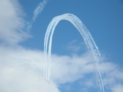 2010/11/17 Category : ショップ情報 『ジョンソンタウンで航空祭』レポート! 11月3日(水・祝日)、この日は朝から気持ちのいい晴天♪こだまカフェのテラスには「プチ屋台」が登場!テラスの前の駐車場の一角では、一部の住人の方達によるガレージセールが開催!こんな風にお祭り気分で待ちわびていたのは、入間基地の航空祭のメインイベント、『航空ショー』です!!ジョンソンタウンにも朝からお客様がチラホラと…。入間基地の周辺の大渋滞に比べれば、ここはパラダイスだとか…。「知る人ぞ知る穴場」らしいです!こだまカフェの店内もオープンから賑わっていたものの、13時半にはみなさんお食事中にも関わらず、外に飛び出し…。ついでに私も外へと飛び出し…(笑)見えました!撮れました!!航空ショー☆☆平行に移動しながら弧を描き、時には垂直に急降下するという、ハラハラドキドキなアクションに…みなさんドリンクを片手に夢中で空を見上げていました。来年は是非、こだまカフェで航空ショーの臨場感を体感してみませんか? PR Comment0 Comment Comment Form お名前name タイトルtitle メールアドレスmail address URLurl コメントcomment パスワードpassword