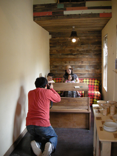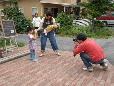 2011/06/27 Category : ショップ情報 ママ友撮影会レポート! 先日6月12日、木曜日のお話。この日の【こだまカフェ】は12時からOPENと告知をしていましたが、朝から貸切の撮影会が行われていました。狭山市にお住まいのママ友さん達がプロのカメラマンに出張を依頼し、好きな場所でお子さまの写真を撮ってもらうというもの。そんなステキな企画の撮影場所に【こだまカフェ】を選んで頂きました♪主催者ママさんのバイタリティと行動力にはビックリ!某大型SNSコミュニティーサイトでママ友さんに呼びかけ、カメラマンさんを手配。そしてインターネットで撮影場所を探した結果、【こだまカフェ】に辿り着いて頂けたようです。この日の参加メンバーは9組の親子。交代でお店の前、店内、の順に自然な姿で写真撮影。順番待ちのママさん&キッズ達。テラスでのんびりと過ごして頂けたようです。出来上がりはどんな感じになっているのか…。みなさんのドキドキ&ワクワクを見ていたら、私達も楽しいひと時を過ごせました。狭山市のママ友さん、ありがとうございました!【こだまカフェ】では撮影スタジオとしてのレンタルサービスも行っています。詳細など、是非お問い合わせ下さいませ。 PR