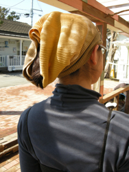 2010/03/06 Category : ショップ情報 『はおにろまるくと』〜3/16まで開催中! 現在ショップでは草木染めフェアと題した、『葉音色~haoniro~「はおにろまるくと」』開催中です!店内も春色に包まれています♪(なんだかそのまま置いておいたら芽が出てお花が咲きそう…)以前から大人気だった「コットンストール」は新色登場!そして待望のベビーウェアも♪ ジョンソンタウンに住むご近所さんにも大好評!! お隣に住むナチュラルな雰囲気が素敵なaikoさんはパン作りの天才!キッチンでの作業中にも役立つターバン(腹巻き)をセレクトして頂きました。彼女の作るパンと草木染めの優しい風合いがピッタリ♪早く本格的にパン作家さんとして活動して欲しいなぁ…★そんなわけで、好評開催中の草木染めフェア。春を先取りしたい「オシャレびと」にオススメです!ご来店頂いたお客さまには…奇跡の『コマイヌ』風景が見れちゃうかも…♪